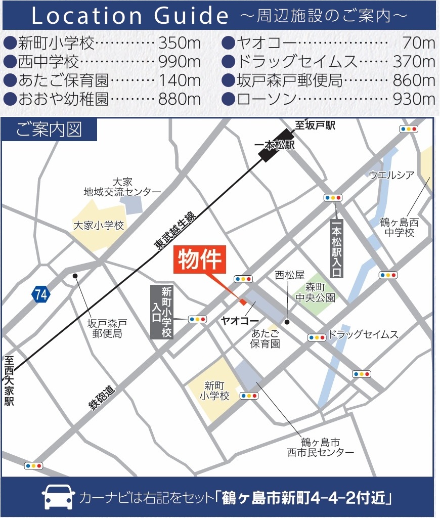 - 新町小学校・・・・・・・・・・徒歩約5分